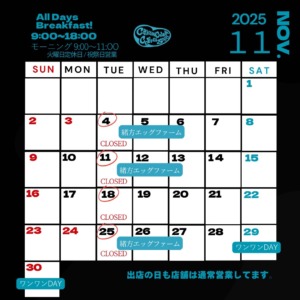 11月営業日&イベント 2025.11.07 【緒方エッグファームさんにて出店】 10:00〜14:00 5日(水),12日(水),26日(水) (なくなり次第終了) 出店中も店舗は通常営業します。 【ワンワンDAY】 29日(土),30日(日) 愛犬とご来店の方へ 一緒に食べられる山鹿のせんべい工房さんの グルテンオイルフリーのお煎餅をプレゼント! #チリンチリンコーヒーストア#11月 寒くなってきました マグカップで楽しむ 最新のお知らせお知らせ一覧 2025.11.13 あると嬉しい 2025.11.11 店内で焼き上げてます 2025.11.08 バターの風味 2025.11.07 マグカップで楽しむ 2025.10.30 寒くなってきました
